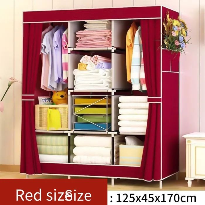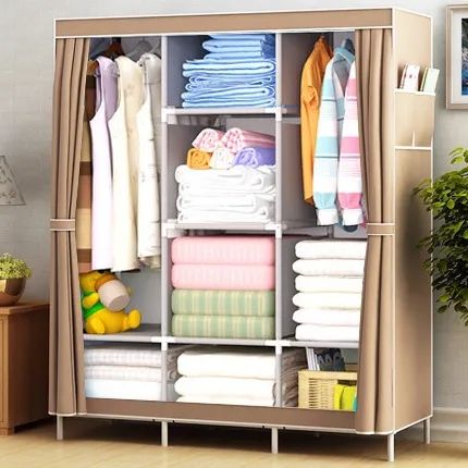 Jaza Keja 3 Columns 130cm Assemble Closets Portable Metallic Portable Cloth Wardrobe with T-shaped Zipper & Velcro